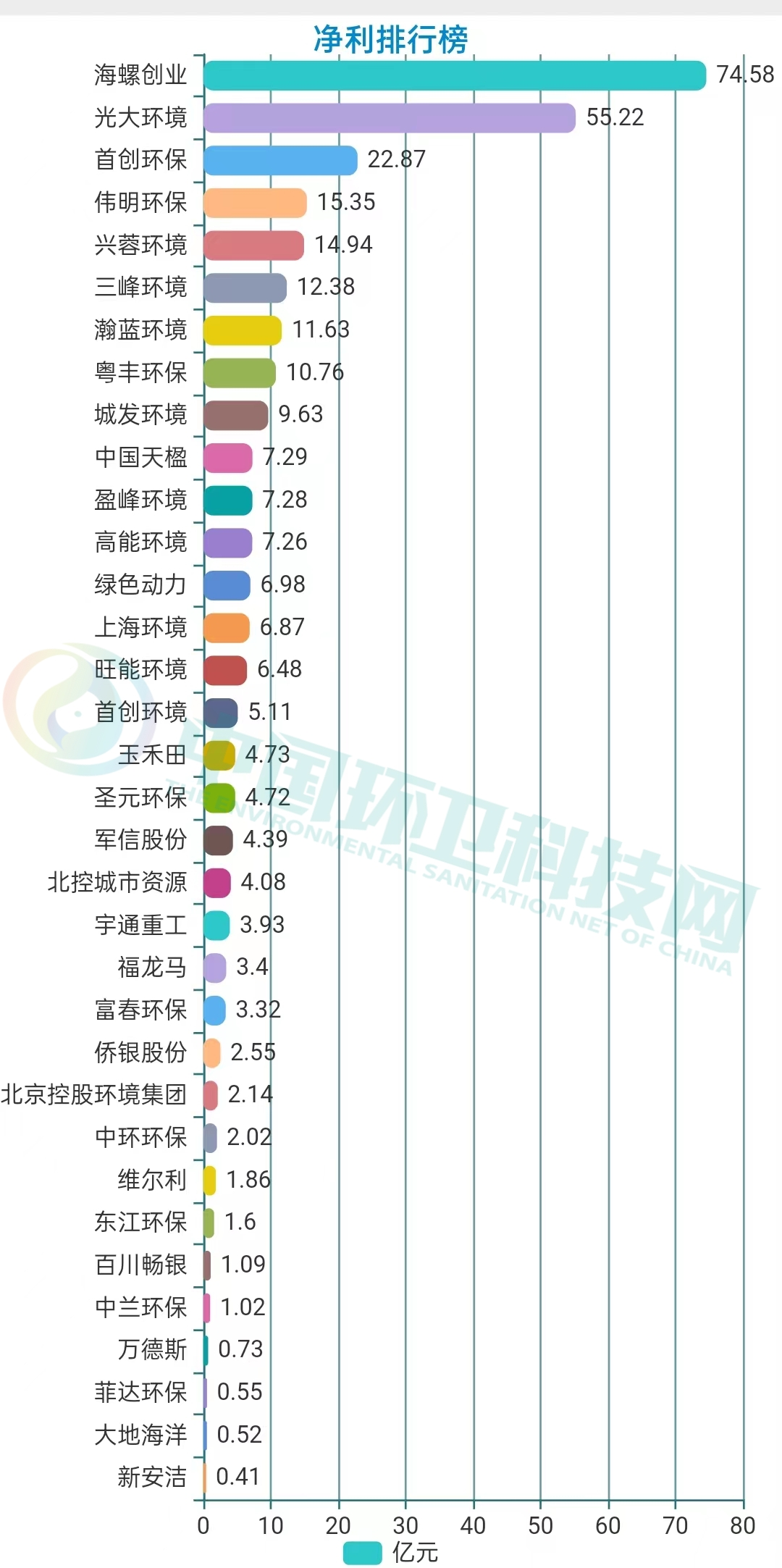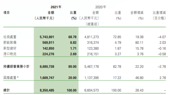 工程建設(shè)方面,建成投運(yùn)項(xiàng)目91個(gè),建成完工項(xiàng)目8個(gè);新開工項(xiàng)目51個(gè),完工并交付的環(huán)境修復(fù)服務(wù)6個(gè)、垃圾分類服務(wù)1個(gè)、EMC項(xiàng)目4個(gè)以及EPC項(xiàng)目9個(gè)。2021年,光大環(huán)境累計(jì)處理生活垃圾43,452,000噸,處理危廢及固廢269,000噸,提供綠色電力22,271,602,000千瓦時(shí),可供18,559,000個(gè)家庭一年使用,相當(dāng)于節(jié)約標(biāo)煤8,909,000噸,減少二氧化碳排放20,211,000噸。同期處理污水1,698,710,000立方米,處理垃圾發(fā)電廠滲濾液9,635,000立方米,減少COD排放740,000噸。在凈利榜中,海螺創(chuàng)業(yè)以74.58億元的歸母凈利潤(rùn)雄踞榜首。海螺創(chuàng)業(yè),2013年12月在香港聯(lián)合交易所主板上市(股票代碼:00586.HK),是一家提供節(jié)能環(huán)?!耙粩堊印苯鉀Q方案的大型企業(yè)集團(tuán),產(chǎn)業(yè)涉及節(jié)能、環(huán)保、新型建材、港口物流四大類,業(yè)務(wù)涵蓋生活垃圾處理、固廢危廢處置、黑臭水體治理、新型建材、港口貿(mào)易、余熱發(fā)電、高效節(jié)能立磨等。細(xì)分業(yè)務(wù)板塊,2021年在垃圾處置領(lǐng)域,海螺創(chuàng)業(yè)營(yíng)收57.44億元,同比增長(zhǎng)19.38%,占全部營(yíng)收比重為68.78%。▲ 海螺創(chuàng)業(yè)分業(yè)務(wù)收入年報(bào)披露,2021年,海螺創(chuàng)業(yè)垃圾發(fā)電業(yè)務(wù)板塊共接收生活垃圾約540萬噸,處置生活垃圾約456萬噸,上網(wǎng)電量約16.65億度,按照入爐量計(jì)算的平均噸上網(wǎng)電量約為365度,較去年同比提高19度。目前,海螺創(chuàng)業(yè)已成功取得貴州清鎮(zhèn)、重慶巫山、吉林洮南、河北圍場(chǎng)、越南春山等13個(gè)項(xiàng)目以及并購(gòu)的10個(gè)項(xiàng)目,共計(jì)23個(gè)焚燒發(fā)電項(xiàng)目,涉及產(chǎn)能規(guī)模約567萬噸/年。3月30日,海螺創(chuàng)業(yè)分拆海螺環(huán)保成功在香港聯(lián)合交易所主板上市。日前,又宣布擬分拆海創(chuàng)綠能于上海證券交易所獨(dú)立上市。在大部分上市企業(yè)都實(shí)現(xiàn)盈利的背景下,博世科和啟迪環(huán)境成為唯二虧損的企業(yè),前者虧損5.15億,后者的虧損更是達(dá)到了驚人的45.4億。博世科,是一家位于廣西的環(huán)保企業(yè),2015年,在深交所創(chuàng)業(yè)板上市,業(yè)務(wù)領(lǐng)域重點(diǎn)為工業(yè)環(huán)境治理、城鄉(xiāng)環(huán)境、土壤環(huán)境修復(fù)、固廢處置與危廢處置、智慧環(huán)衛(wèi)、環(huán)境服務(wù)業(yè)等。對(duì)于虧損原因,博世科在年報(bào)中披露主要是受到疫情反復(fù)、經(jīng)濟(jì)下行、行業(yè)競(jìng)爭(zhēng)加劇、市政項(xiàng)目結(jié)算和老舊項(xiàng)目回款不及預(yù)期等內(nèi)外部發(fā)展阻力綜合影響。啟迪環(huán)境,這個(gè)曾經(jīng)的固廢領(lǐng)域龍頭企業(yè),最近頻頻登上環(huán)衛(wèi)科技網(wǎng)的頭條,對(duì)于它已無須過多贅述。可以說,它的虧損早就在業(yè)內(nèi)人士的預(yù)料之中。而對(duì)于虧損原因,啟迪環(huán)境在年報(bào)中這樣解釋:“系公司對(duì)現(xiàn)有資產(chǎn)、項(xiàng)目進(jìn)行全面梳理,部分項(xiàng)目擬戰(zhàn)略性退出,公司根據(jù)《企業(yè)會(huì)計(jì)準(zhǔn)則》規(guī)定對(duì)相關(guān)資產(chǎn)計(jì)提減值所致。不過,該虧損對(duì)公司當(dāng)前經(jīng)營(yíng)及償債能力未產(chǎn)生重大影響?!?/span>具體來說,原因包括對(duì)已停建項(xiàng)目、擬退出項(xiàng)目計(jì)提資產(chǎn)減值;對(duì)資產(chǎn)運(yùn)營(yíng)效率較低、不能持續(xù)運(yùn)營(yíng)和公司整體戰(zhàn)略涵蓋不到的項(xiàng)目進(jìn)行退出、轉(zhuǎn)讓處置;對(duì)部分款項(xiàng)回收存在實(shí)質(zhì)性障礙的應(yīng)收賬款、其他應(yīng)收款、長(zhǎng)期應(yīng)收款及應(yīng)收票據(jù)計(jì)提信用減值損失等。如今,博世科于2021年完成混改,廣環(huán)投成為其控股股東。啟迪環(huán)境與城發(fā)環(huán)境的合并雖然存在客觀上的“不確定性”,混改終究會(huì)完成。我們也希望完成混改后的兩家企業(yè),能夠迅速走上正軌,扭虧為盈。天楹、盈峰領(lǐng)跑,唯宇通、北控實(shí)現(xiàn)雙增這36家上市企業(yè)中有9家公司主營(yíng)業(yè)務(wù)為環(huán)衛(wèi)板塊,中國(guó)天楹、盈峰環(huán)境和啟迪環(huán)境領(lǐng)跑營(yíng)收榜,中國(guó)天楹、盈峰環(huán)境和玉禾田則在凈利榜上名列前茅。中國(guó)天楹,早在1994年就登陸深交所主板A股。其以垃圾焚燒發(fā)電、城市環(huán)境服務(wù)、環(huán)保裝備制造為壓艙石,打通了從前端清掃、中轉(zhuǎn)到分選、末端處置的城市環(huán)境服務(wù)全產(chǎn)業(yè)鏈。2021年,在城市環(huán)境服務(wù)板塊,其營(yíng)業(yè)收入達(dá)到90.84億元,占全部營(yíng)收比重44.11%。2021年,中國(guó)天楹中標(biāo)了烏海市濱河新區(qū)環(huán)衛(wèi)作業(yè)市場(chǎng)化運(yùn)營(yíng)項(xiàng)目,如皋長(zhǎng)江鎮(zhèn)道路、河道保潔、垃圾清運(yùn)及農(nóng)村環(huán)境整治服務(wù)外包項(xiàng)目,張北縣草原天路環(huán)境衛(wèi)生服務(wù)政府采購(gòu)項(xiàng)目以及任丘市城鄉(xiāng)環(huán)衛(wèi)一體化農(nóng)村部分對(duì)外承包項(xiàng)目等多個(gè)城市環(huán)境服
