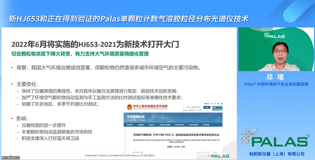 “我國大氣環(huán)境治理成效顯著,但顆粒物仍然是很多城市環(huán)境空氣的主要污染物”,帕剌斯儀器(Palas)中國環(huán)境和汽車業(yè)務(wù)拓展經(jīng)理鄧珺指出,“在此背景下,將于2022年6月實施的《環(huán)境空氣顆粒物(PM10和 PM2.5)連續(xù)自動監(jiān)測系統(tǒng)技術(shù)要求及檢測方法(HJ653-2021)》無疑是向顆粒物監(jiān)測新技術(shù)敞開了大門,將有力推動大氣環(huán)境質(zhì)量精細(xì)化管理。”