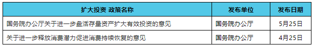 5月25日,國務(wù)院辦公廳印發(fā)《關(guān)于進一步盤活存量資產(chǎn)擴大有效投資的意見》,明確重點盤活存量規(guī)模較大、當前收益較好或增長潛力較大的基礎(chǔ)設(shè)施項目資產(chǎn),包括水電氣熱等市政設(shè)施、生態(tài)環(huán)保、新型基礎(chǔ)設(shè)施等;精準有效支持新項目建設(shè),盤活存量資產(chǎn)回收資金擬投入新項目建設(shè)的,優(yōu)先支持環(huán)境基礎(chǔ)設(shè)施、“一老一小”等重點領(lǐng)域項目?!蛾P(guān)于進一步釋放消費潛力促進消費持續(xù)恢復(fù)的意見》提出鼓勵消費者更換或新購綠色節(jié)能家電、環(huán)保家具等家居產(chǎn)品;加快構(gòu)建廢舊物資循環(huán)利用體系等。
