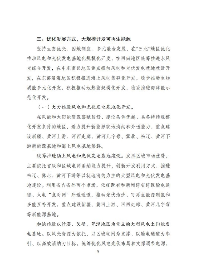 在“三北”地區(qū)優(yōu)化推動(dòng)風(fēng)電和光伏發(fā)電基地化規(guī)模化開發(fā),在西南地區(qū)統(tǒng)籌推進(jìn)水風(fēng)光綜合開發(fā),在中東南部地區(qū)重點(diǎn)推動(dòng)風(fēng)電和光伏發(fā)電就地就近開發(fā),在東部沿海地區(qū)積極推進(jìn)海上風(fēng)電集群化開發(fā)。