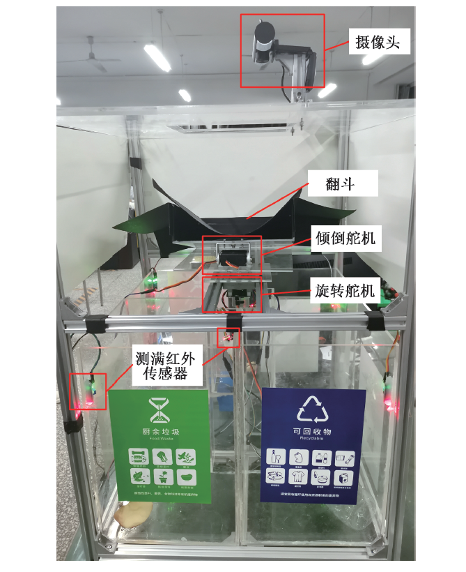 目前智能垃圾箱有多種形式,主要分為聲控方式和視覺(jué)方式2類(lèi)。聲控方式需要投放者對(duì)著垃圾箱說(shuō)出垃圾的名稱(chēng),垃圾箱判定該垃圾所屬類(lèi)別后打開(kāi)相應(yīng)垃圾箱,完成投放,如馬浚剛等設(shè)計(jì)了一種基于STM32單片機(jī)的語(yǔ)音識(shí)別智能垃圾箱,利用語(yǔ)音識(shí)別模塊ASR-MO8B、語(yǔ)音播報(bào)模塊WT2003S-16和sG90模擬舵機(jī)實(shí)現(xiàn)垃圾箱的智能化聲音識(shí)別,并且能語(yǔ)音控制對(duì)應(yīng)垃圾箱垃圾蓋的自動(dòng)開(kāi)閉;趙小芬基于語(yǔ)音識(shí)別算法,并將其應(yīng)用于垃圾分類(lèi),開(kāi)發(fā)了一種軟硬件結(jié)合的嵌入式智能垃圾箱。基于視覺(jué)方式主要是采用目標(biāo)檢測(cè)識(shí)別的方法進(jìn)行垃圾識(shí)別和分類(lèi),識(shí)別過(guò)程主要包括圖像預(yù)處理,特征提取和分類(lèi)3個(gè)步驟,依據(jù)特征提取方式可分為傳統(tǒng)機(jī)器學(xué)習(xí)方法和深度學(xué)習(xí)方法。傳統(tǒng)機(jī)器學(xué)習(xí)方法是針對(duì)圖像提取其特征并進(jìn)行匹配篩選,確定目標(biāo)種類(lèi),如黃浩然對(duì)采集到的垃圾圖像提取Hu不變矩和12個(gè)顏色空間特征作為特征向量,對(duì)比特征向量之間的相似性來(lái)確定垃圾種類(lèi);黃興華等通過(guò)改進(jìn)局部二值模式(LBP)紋理特征算法,結(jié)合梯度方向直方圖(HOG)算法,提出一種新的特征融合方法,并利用支持向量機(jī)(SVM)進(jìn)行垃圾分類(lèi)識(shí)別; Irfan等采用Haar-Cascade方法檢測(cè)地板上的物體并將灰度共生矩陣(GLCM)和定向梯度直方圖(HOG)結(jié)合起來(lái)得到1組特征,利用支持向量機(jī)( SVM)將物體進(jìn)行垃圾分類(lèi)。深度學(xué)習(xí)法垃圾分類(lèi)是利用近年來(lái)較流行的深度學(xué)習(xí)模型進(jìn)行垃圾識(shí)別,如 Wang等提出的通過(guò)使用區(qū)域提議網(wǎng)絡(luò)和 ResNet 網(wǎng)絡(luò)算法訓(xùn)練Faster R-CNN開(kāi)源框架,再通過(guò) RPN(區(qū)域提議網(wǎng)絡(luò))層得到輸出; Kumar等研究了YOLO v3算法在Darknet神經(jīng)網(wǎng)絡(luò)框架中用于訓(xùn)練自制數(shù)據(jù)集,針對(duì)6種對(duì)象類(lèi)別(紙板﹑玻璃、金屬、紙張﹑塑料和有機(jī)廢物)進(jìn)行了訓(xùn)練,使用YOLO v3-tiny執(zhí)行了檢測(cè)任務(wù),以驗(yàn)證YOLO v3算法的能力,結(jié)果表明:所提出的YOLO v3方法對(duì)具有一定的泛化能力。還有部分學(xué)者也進(jìn)行了相關(guān)研究。