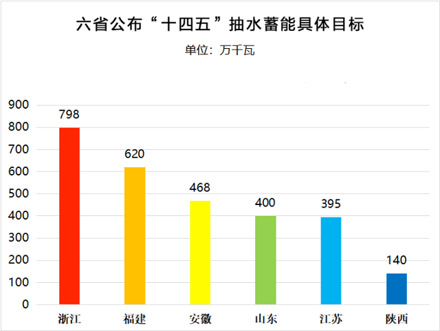 山西、廣東、浙江、安徽、河南、山東、甘肅、黑龍江、湖南、江蘇、江西、寧夏、陜西、貴州、新疆、吉林、青海、福建、廣西、湖北、四川、重慶、內(nèi)蒙古、河北24個省市區(qū)都要求積極發(fā)展抽水蓄能,其中浙江、福建、安徽、山東、江蘇、陜西6省明確“十四五”期間抽水蓄能裝機(jī)規(guī)劃目標(biāo),到2025年6省抽水蓄能裝機(jī)總量將達(dá)到28.21GW。(注:原文有刪改)