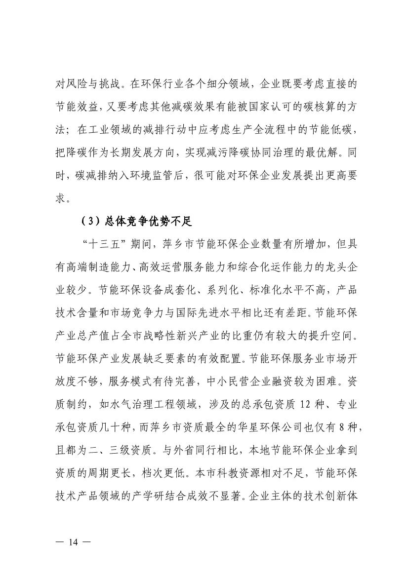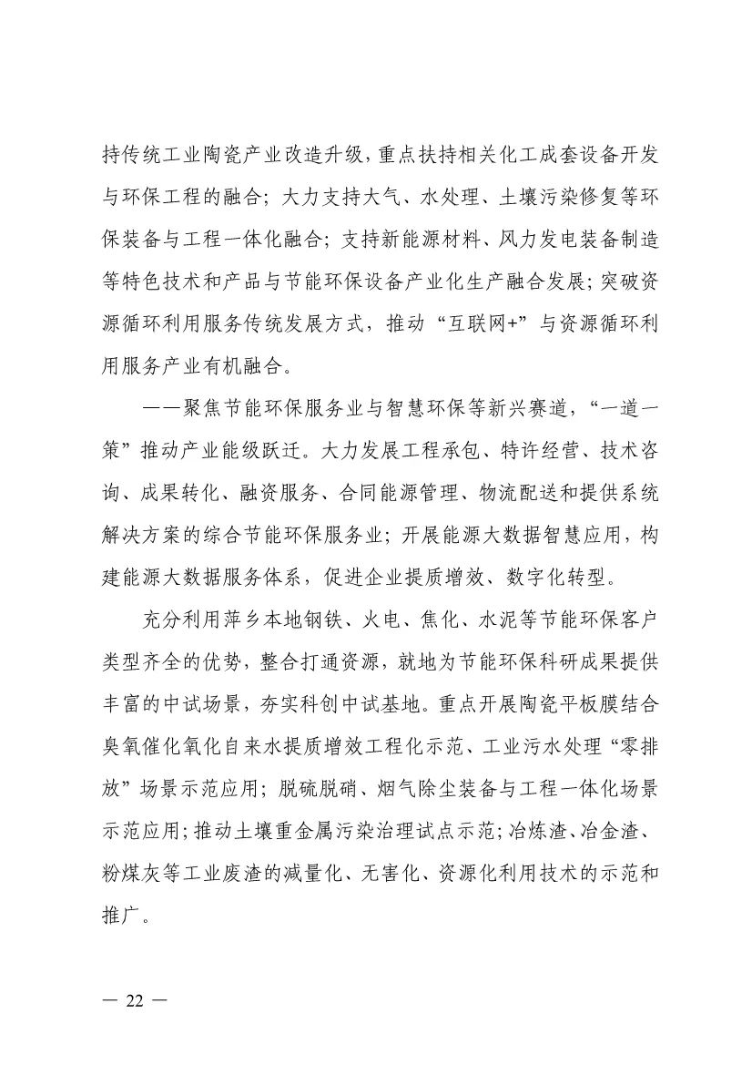 “十四五”期間,組建1-2個(gè)環(huán)保集團(tuán),以增強(qiáng)對(duì)國際先進(jìn)技術(shù)裝備服務(wù)的承接能力,著力突破一批關(guān)鍵核心技術(shù),強(qiáng)化集成應(yīng)用示范,形成具有自主知識(shí)產(chǎn)權(quán)的整裝成套技術(shù)裝備,大幅提升節(jié)能環(huán)保技術(shù)和成套裝備本地化率,打造區(qū)域特色鮮明的湘東節(jié)能環(huán)保產(chǎn)業(yè)園。