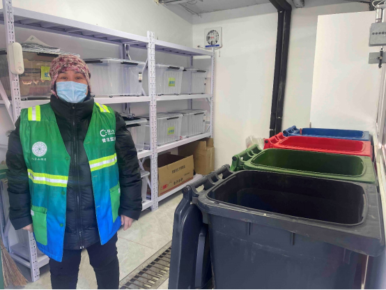 圖12 北京市石景山區(qū)永樂小區(qū)垃圾分類驛站的垃圾分類普法監(jiān)督員,攝影:李澤軍_1106794,拍攝時(shí)間:2022年3月4日