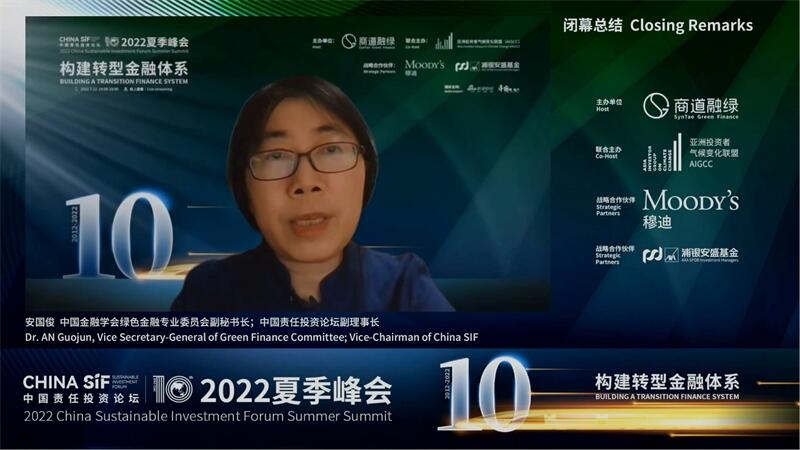 最后,中國金融學會綠色金融專業(yè)委員會副秘書長、China SIF副理事長安國俊博士做了總結(jié)發(fā)言。她指出,要充分發(fā)揮綠色金融和轉(zhuǎn)型金融的作用,首先要加強投資、金融、財稅等工具創(chuàng)新,激勵社會資本投入綠色低碳產(chǎn)業(yè)及轉(zhuǎn)型技術(shù)領(lǐng)域;完善綠色金融與綠色財政、產(chǎn)業(yè)政策協(xié)調(diào)發(fā)展的“1+N”政策體系,推進綠色金融、轉(zhuǎn)型金融、可持續(xù)金融、氣候投融資、影響力協(xié)同發(fā)展。引導綠色基金ESG投資、資本向善的趨勢和體系的完善。同時也要逐步完善與轉(zhuǎn)型金融相關(guān)的行業(yè)標準、風險定價機制等“基礎(chǔ)設(shè)施”框架的搭建,培育綠色基金、碳中和基金等綠色投資者,將資管產(chǎn)品創(chuàng)新與社會責任承擔有效協(xié)同,為雙碳目標構(gòu)建我國綠色金融與轉(zhuǎn)型金融協(xié)同發(fā)展的體系。