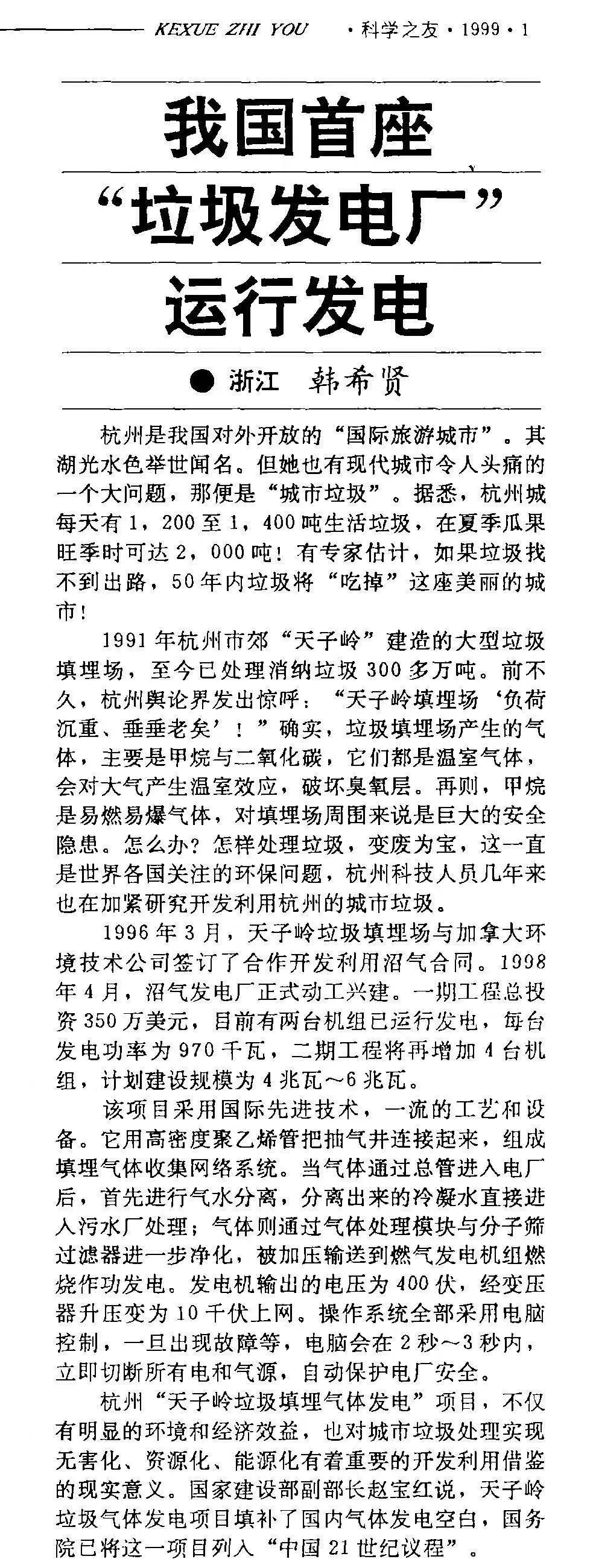 據(jù)當(dāng)時(shí)的媒體報(bào)道,1996年3月,天子嶺垃圾填埋場與一家加拿大公司簽訂了合作開發(fā)利用沼氣合同。1998年4月,沼氣發(fā)電廠正式動工興建。一期工程總投資350萬美元,安裝兩臺發(fā)電機(jī)組,每臺發(fā)電功率為970千瓦,二期工程將再增加4臺機(jī)組,計(jì)劃建設(shè)規(guī)模為4~6兆瓦。報(bào)道原文表示,杭州“天子嶺垃圾填埋氣體發(fā)電”項(xiàng)目不僅有明顯的環(huán)境和經(jīng)濟(jì)效益,也對城市垃圾處理實(shí)現(xiàn)無害化、資源化、能源化有著重要的開發(fā)利用借鑒的現(xiàn)實(shí)意義。時(shí)任原建設(shè)部副部長的趙寶紅說,天子嶺垃圾氣體發(fā)電項(xiàng)目填補(bǔ)了國內(nèi)氣體發(fā)電空白,國務(wù)院已將這一項(xiàng)目列入“中國21世紀(jì)議程”。天子嶺垃圾填埋場的設(shè)計(jì)、施工、運(yùn)維及其在滲濾液處理、沼氣發(fā)電等方面的一系列創(chuàng)新,堪稱是中國生活垃圾衛(wèi)生填埋技術(shù)發(fā)展史的一部“縮影”。在1990年代前后,國內(nèi)先后建成了上海老港生活垃圾填埋場、蘇州市七子山生活垃圾填埋場、濟(jì)南市生活垃圾無害化處理廠等一批大型生活垃圾衛(wèi)生填埋設(shè)施,導(dǎo)引著中國生活垃圾處理進(jìn)入“衛(wèi)生填埋”新時(shí)代。而在那之前,我們的生活垃圾還只能簡單堆放、簡易填埋,甚至直接傾倒入河流、海洋。可以說,生活垃圾“衛(wèi)生填埋”是國內(nèi)首個徹底改變?nèi)珖罾幚憩F(xiàn)狀的新技術(shù),地位絕不啻于后來風(fēng)行的垃圾焚燒發(fā)電。從1991年到2020年,包括一埋場和二埋場在內(nèi),整個天子嶺垃圾填埋場總計(jì)處理生活垃圾近3000萬噸。隨著杭州市生活廢棄物管理轉(zhuǎn)型升級,杭州市生活垃圾處理逐漸形成“焚燒為主、資源化為輔、填埋為保障”的新格局。2020年12月16日23時(shí)58分,隨著最后一張覆蓋膜的密閉完成,天子嶺垃圾填埋場正式結(jié)束填埋主力的角色。