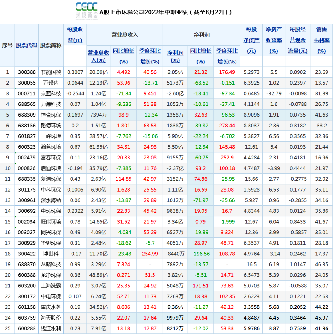 出現(xiàn)這一情況,直接原因是受疫情影響,但長期來看還是由于垃圾焚燒市場的日漸收窄,城鎮(zhèn)污水處理率也接近飽和,傳統(tǒng)增量市場放緩已是大勢(shì)所趨。在此背景下,光大環(huán)境也在積極尋求轉(zhuǎn)型,一是由投資驅(qū)動(dòng)轉(zhuǎn)為運(yùn)營拉動(dòng),二是積極拓展餐廚廚余、垃圾分類等協(xié)同業(yè)務(wù),三是積極開拓海外市場,四是全面提升企業(yè)管理。作為環(huán)保產(chǎn)業(yè)體量最大的公司,光大環(huán)境對(duì)于市場冷暖的敏感度無疑也最高。環(huán)保市場的一個(gè)細(xì)微變化,反映到它的身上可能就是一個(gè)大的陣痛。而光大環(huán)境為了應(yīng)對(duì)市場變化做出的變革,對(duì)于其他環(huán)保公司也有極強(qiáng)的借鑒意義。營收同比下降19%,凈利潤同比下降近28%,這樣“雙降”的場面,已經(jīng)好幾年沒有出現(xiàn)在光大環(huán)境身上了。對(duì)比去年,2021年上半年光大環(huán)境的成績是營業(yè)收入同比增長44%,除利息、稅項(xiàng)、折舊及攤銷前盈利增長29%,權(quán)益持有人應(yīng)占盈利增長28%,每股基本盈利也增長了28%。從去年的+44%,到今年的-19%,一年之間,光大環(huán)境的營收增速下降了63個(gè)百分點(diǎn)。去年,由于業(yè)績出色,光大環(huán)境還首次躋身《財(cái)富》中國500強(qiáng),位列第283位,成為榜單中排名最高的環(huán)境企業(yè)。而今年,光大環(huán)境雖然依然入選了這份榜單,但排名已經(jīng)從第283位下降到301位,下滑了18位。再看去年全年的業(yè)績,光大環(huán)境2021年年報(bào)顯示,公司全年實(shí)現(xiàn)營業(yè)收入498.95億港元,同比增長16.23%,歸屬母公司凈利潤68.04億港元,同比增長13.10%,基本每股收益為1.11港元?! ?/span>雖然增速比半年報(bào)的時(shí)候有所收窄,但也能保持十幾個(gè)百分點(diǎn)的增長。還有前年的半年報(bào),2020年8月13日,當(dāng)時(shí)還叫“光大國際”的公司發(fā)布2020年上半年業(yè)績,雖然受到新冠肺炎疫情、貿(mào)易沖突等因素的沖擊,但公司還是實(shí)現(xiàn)營收增長13%,凈利潤增長15%的好成績。回顧過去兩年的半年報(bào),光大環(huán)境都能保持百分之十幾、甚至百分之四十幾的營收增速,而今年則第一次出現(xiàn)了負(fù)增速。是不是市場的整體大環(huán)境都不好?也不一定。橫向?qū)Ρ绕渌h(huán)保公司,據(jù)全國工商聯(lián)環(huán)境商會(huì)統(tǒng)計(jì),今年上半年還是有近七成的企業(yè)實(shí)現(xiàn)了營收增長,中環(huán)環(huán)保、節(jié)能國禎、恒譽(yù)環(huán)保、旺能環(huán)境、海天股份等都實(shí)現(xiàn)了業(yè)績和凈利“雙升”。▼標(biāo)紅色的是數(shù)據(jù)增長的環(huán)保企業(yè)。圖片來源:全聯(lián)環(huán)境商會(huì)可見,雖然環(huán)保市場整體不太景氣,但也有許多環(huán)保企業(yè)通過自身努力,實(shí)現(xiàn)了業(yè)績和凈利潤的逆勢(shì)增長。光大環(huán)境半年報(bào)業(yè)績?yōu)楹问状蜗禄?strong style="margin: 0px;padding: 0px;outline: 0px;box-sizing: border-box !important;overflow-wrap: break-word !important;">短期原因肯定與疫情有關(guān)。以它的附屬公司——光大綠色環(huán)保為例,上半年歸母凈利潤也同比減少了不低于40%。究其原因,主要就是受國內(nèi)疫情影響,相關(guān)地區(qū)管控措施使得生物質(zhì)綜合利用板塊原材料成本大幅上漲、危廢及固廢板塊需求疲弱及處理單價(jià)持續(xù)下降所致。而這也是很多其他環(huán)保公司上半年業(yè)績下滑的共同原因。正和生態(tài)就表示,2022年初公司主要市場區(qū)域深圳、上海、河北和北京先后受疫情防控的影響,地方政府主導(dǎo)的項(xiàng)目招投標(biāo)活動(dòng)明顯受阻,項(xiàng)目掛網(wǎng)、投標(biāo)、審批手續(xù)等耗時(shí)延長。同時(shí),由于差旅受限,對(duì)公司重點(diǎn)區(qū)域的市場推廣活動(dòng)有顯著的影響。不過,光大環(huán)境也沒有把業(yè)績的下滑單純歸結(jié)到疫情身上,而是看到了更長期的變量。據(jù)公司管理層介紹,建造收益下降不完全是疫情因素導(dǎo)致。目前,全國垃圾焚燒發(fā)電產(chǎn)能已出現(xiàn)局部過剩,國內(nèi)城鎮(zhèn)污水處理率也已接近飽和,市場進(jìn)入存量博弈階段,持續(xù)高速增長必將難以為繼。傳統(tǒng)市場的萎縮,在光大環(huán)境的核心業(yè)務(wù)——垃圾焚燒領(lǐng)域體現(xiàn)得最為明顯。據(jù)《環(huán)保圈》統(tǒng)計(jì),2022年上半年,全國共開標(biāo)26個(gè)垃圾焚燒項(xiàng)目(新建),處理規(guī)模合計(jì)達(dá)到2.01萬噸/日,投資額合計(jì)127.29億元。而在2019年上半年的時(shí)候,全國新增項(xiàng)目還是47個(gè),處理規(guī)模合計(jì)5.59萬噸/日。4年之間,新增項(xiàng)目個(gè)數(shù)和處理規(guī)模同比分別下降了45%和64%。▼數(shù)據(jù)來源:中國政府采購網(wǎng)及各地方政府采購網(wǎng)、環(huán)保圈、環(huán)衛(wèi)科技網(wǎng)新訂單釋放速度放緩,再加上國補(bǔ)退坡等的影響,使得垃圾焚燒企業(yè)不得不開展“花式自救”。以協(xié)同處置為例,據(jù)《環(huán)保圈》不完全統(tǒng)計(jì),2022年上半年發(fā)布的有關(guān)垃圾焚燒項(xiàng)目協(xié)同處置/技改摻燒其他垃圾的事件多達(dá)24起,其中涉及餐廚垃圾協(xié)同處置項(xiàng)目共計(j