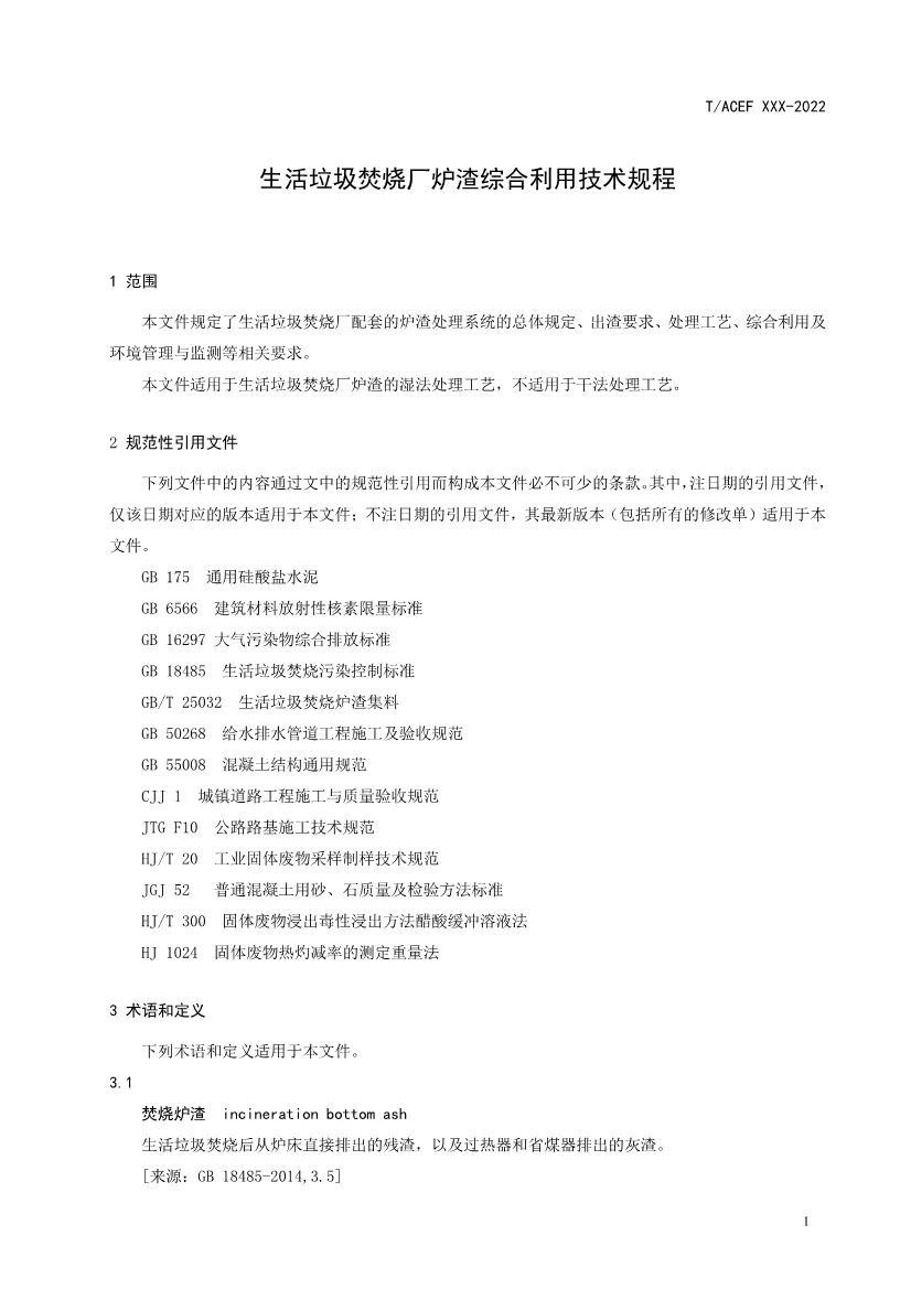 《生活垃圾焚燒廠爐渣綜合利用技術(shù)規(guī)程(征求意見稿)》團標(biāo)發(fā)布!