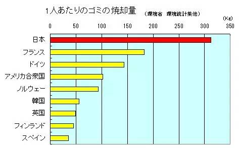 據(jù)日本環(huán)境省的數(shù)據(jù)表明,日本每人每年的垃圾排出量為320kg,日本的垃圾焚燒廠的數(shù)量也是高居世界首位(日本又1243座燃燒爐,相比之下,美國(guó)有351座,法國(guó)有188座,德國(guó)只有154座……)。