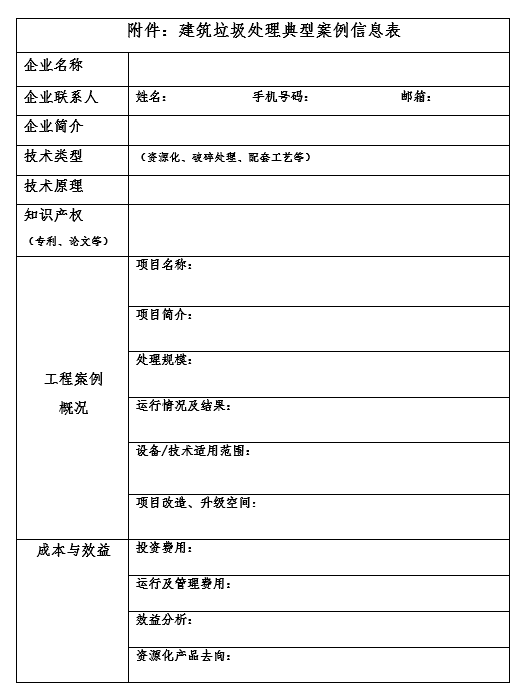 關(guān)于征集建筑垃圾處理典型案例的通知