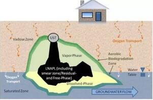 清理完土壤地下水污染之后,一般還要進(jìn)行人類(lèi)健康風(fēng)險(xiǎn)評(píng)估。人類(lèi)健康風(fēng)險(xiǎn)評(píng)估中,很重要的一個(gè)概念就是石油廢氣入侵,這里我們講的石油廢氣入侵包括石油烴類(lèi)(PHCs)和非石油烴燃料添加劑所產(chǎn)生的污染氣體入侵。一旦地下儲(chǔ)油罐發(fā)生泄漏,并且泄漏區(qū)域及周邊一定范圍內(nèi)有建筑物或者之后場(chǎng)地將會(huì)被開(kāi)發(fā)成居民區(qū)/商業(yè)用地等,那么廢氣入侵就不得不被考慮了。因?yàn)檫@些污染氣體能穿過(guò)土壤,通過(guò)裂縫等途徑遷移到建筑物內(nèi),對(duì)室內(nèi)空氣造成影響,進(jìn)而對(duì)人體健康和室內(nèi)安全造成一定威脅。