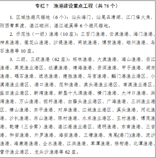 港口發(fā)展。推進(jìn)大南海港區(qū)、廣東神泉現(xiàn)代漁港區(qū)、前詹港區(qū)、資深港區(qū)、靖海港區(qū)建設(shè),以發(fā)展現(xiàn)代漁業(yè)、能源、原材料和通用散雜貨運(yùn)輸為主,推動石油化工、裝備制造等大型臨港產(chǎn)業(yè)發(fā)展。