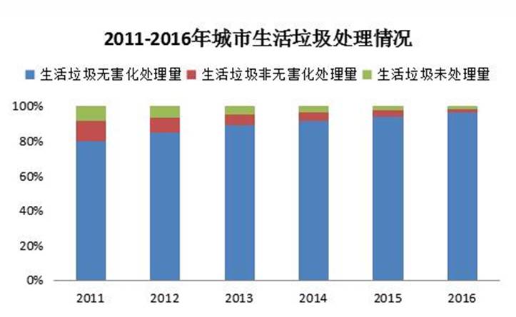 而在35%的要求之下,還存在著相當(dāng)高的生活垃圾處理率:《2017年全國大、中城市固體廢物污染環(huán)境防治年報》顯示,2016年,我國214個大、中型城市生活垃圾處理率達(dá)99.1%;《2016年城鄉(xiāng)建設(shè)統(tǒng)計公報》顯示,到2016年末,全國城市生活垃圾無害化處理率96.62%。