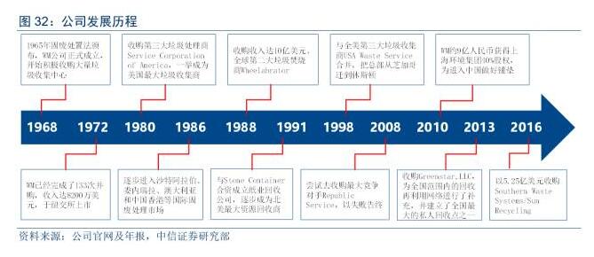 上市之后,公司持續(xù)開啟一系列收購,僅在在上市后一年半內(nèi)就完成75起并購。1998年,公司與全美第三大垃圾收集企業(yè)USAWasteService合并,2008年公司出價62億美金欲收購全美第二大固廢處理企業(yè)RepublicService,但最終沒有獲得成功。在立足美國的基礎(chǔ)上,WM也在1975~1989年逐步進入沙特阿拉伯、阿根廷、澳大利亞、委內(nèi)瑞拉和中國香港等地區(qū),從事市政垃圾處理。1984年公司收購ServicesCorporationofAmercia,收入規(guī)模從10億美元增加到12億美元,一舉成為美國最大固廢處理公司。