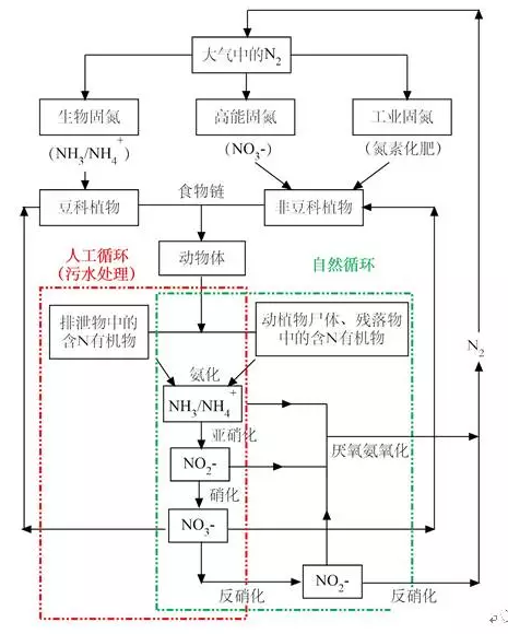 資源/能源回收乃當(dāng)今污水處理技術(shù)發(fā)展的方向,但對污水全元素回收似乎又有過之而不及。對污水氮回收技術(shù)總結(jié)與經(jīng)濟分析顯示,以回收為目的而去除污水中的氮似乎在經(jīng)濟上不劃算,不如通過傳統(tǒng)硝化/反硝化、甚至是現(xiàn)代厭氧氨氧化(ANAMMOX)技術(shù)將污水中的氮轉(zhuǎn)變?yōu)榈獨?N2)而回歸大氣,再以工業(yè)合成氨(NH3)方式去制取氮肥,畢竟大氣中的主要成分是N2(78%),且存在無消耗殆盡之虞的氮再生循環(huán)。