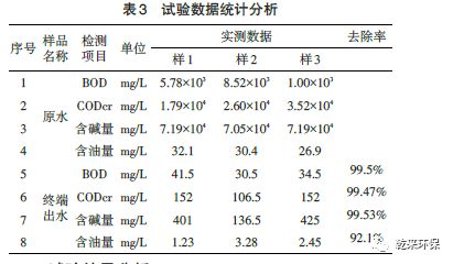 針對含堿廢水特點(diǎn),采用了實(shí)驗(yàn)室處理為試驗(yàn)基礎(chǔ),在試驗(yàn)取得成果的基礎(chǔ)上,開展工藝設(shè)計(jì),綜合利用除油設(shè)備、高效蒸發(fā)設(shè)備、COD物化處理系統(tǒng)等工藝,在某煤制烯烴項(xiàng)目現(xiàn)場建設(shè)一套3m3/h處理能力的中試裝置,中試裝置建好投料后,很好地去除了廢水中的油類、鹽、堿及COD,提高了廢水的可生化性,滿足了后續(xù)生化工藝的進(jìn)水要求。