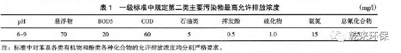 國(guó)家和部分地方的管理部門對(duì)各地區(qū)、各行業(yè)的污水排放要求出臺(tái)了控制標(biāo)準(zhǔn)和法律法規(guī)。1998年1月1日后建設(shè)的煤焦油加工企業(yè)如所在地方還沒有頒布相關(guān)的法規(guī),就應(yīng)按的《污水綜合排放標(biāo)準(zhǔn)》(GB 8978—1996)執(zhí)行(見表1)。