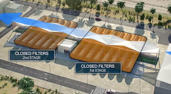 這個(gè)新的海水淡化廠建在一個(gè)現(xiàn)有反滲透海水淡化廠旁邊,占地面積約17.5公頃。太陽能面板組將安裝在距離海水淡化廠1公里以外90公頃的土地上。
