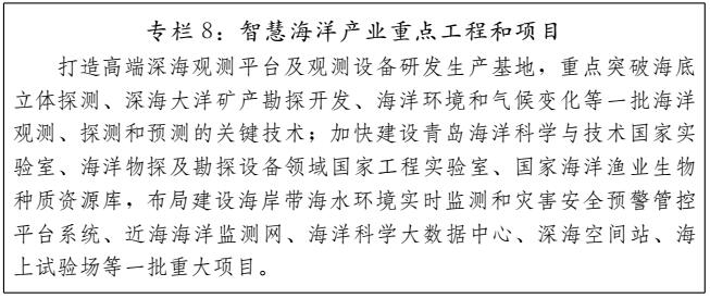 (五)現(xiàn)代海洋產(chǎn)業(yè)。拓展海洋智能信息化及海洋服務(wù)業(yè)發(fā)展新空間,培育一批前瞻性產(chǎn)業(yè),構(gòu)建低消耗、低污染、高收益的現(xiàn)代海洋產(chǎn)業(yè)體系,鞏固擴(kuò)大走在全國前列的優(yōu)勢地位。