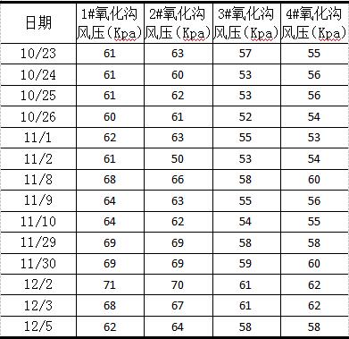 表2 各氧化溝運行風(fēng)壓數(shù)據(jù)