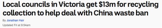 那些受到中國 “洋垃圾“ 禁令影響的市政廳可以暫時(shí)喘一口氣了,日前,維州政府愿意出資1300萬澳元幫助他們管理垃圾。但是這類援助只持續(xù)到今年7月1日。