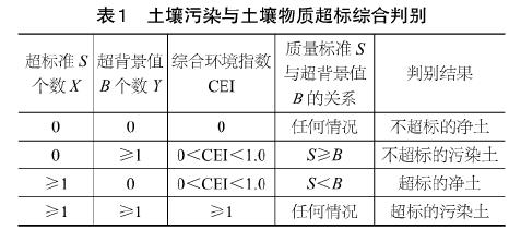 (3)土壤污染與土壤物質(zhì)超標(biāo)綜合判別。判別指標(biāo)可選用土壤綜合環(huán)境指數(shù)CEI,其計(jì)算方法同規(guī)范HJ/T166中的“綜合污染指數(shù)CPI”計(jì)算方法,但依據(jù)CEI判別土壤污染與質(zhì)量超標(biāo)時,應(yīng)將規(guī)范中的表12-2修改為表1的形式。