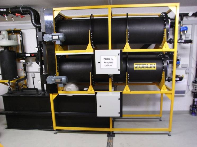 圖1:水平緊湊集裝箱式吹脫設(shè)備。特點:單線去除率99.98%, 自凈功能,節(jié)能,移動性強,空間需求低,抗凍防雨。