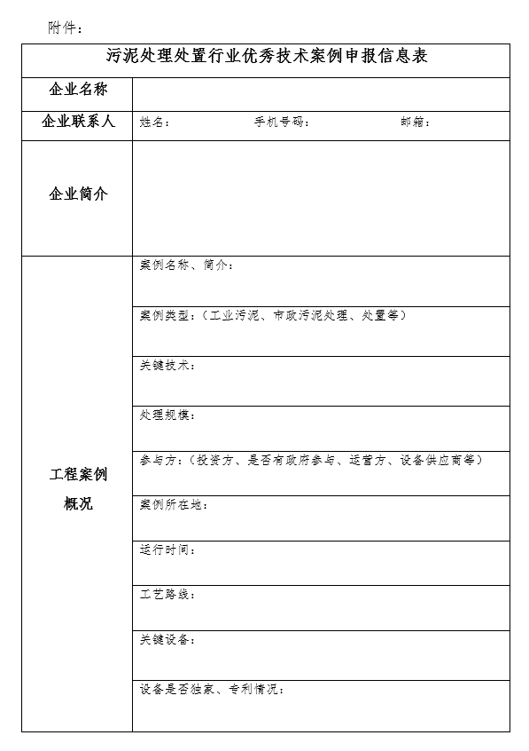 附件:污泥處理處置行業(yè)優(yōu)秀技術案例申報信息表