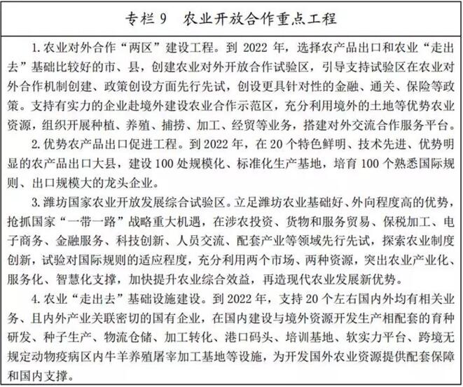 (一)提升農(nóng)業(yè)科技創(chuàng)新能力。積極爭取國家級(jí)涉農(nóng)科研機(jī)構(gòu)在山東布局分支機(jī)構(gòu),加快濰坊北京大學(xué)現(xiàn)代農(nóng)業(yè)研究院建設(shè)。強(qiáng)化全省農(nóng)業(yè)高校、科研院所、農(nóng)產(chǎn)品加工大企業(yè)研發(fā)中心等各類農(nóng)業(yè)科技資源整合和集成,搭建農(nóng)科教創(chuàng)新平臺(tái),建設(shè)一批省級(jí)以上農(nóng)業(yè)重點(diǎn)實(shí)驗(yàn)室和技術(shù)創(chuàng)新中心,造就一批具有較強(qiáng)國際競爭力的創(chuàng)新型領(lǐng)軍企業(yè),全面提升農(nóng)業(yè)科技創(chuàng)新能力和核心競爭力。多管齊下引進(jìn)對(duì)我省現(xiàn)代農(nóng)業(yè)產(chǎn)業(yè)發(fā)展有重大影響的創(chuàng)新科研團(tuán)隊(duì)和海內(nèi)外高層次農(nóng)業(yè)科技人才。通過政策扶持、項(xiàng)目匹配、資金資助等方式,深入實(shí)施農(nóng)業(yè)科研杰出人才計(jì)劃和杰出青年農(nóng)業(yè)科學(xué)家項(xiàng)目,培養(yǎng)一批科技領(lǐng)軍人才和高水平創(chuàng)新創(chuàng)業(yè)團(tuán)隊(duì)。完善首席專家、農(nóng)業(yè)技術(shù)推廣人員和新型經(jīng)營主體的聯(lián)動(dòng)機(jī)制,探索建立“創(chuàng)新團(tuán)隊(duì)+基層農(nóng)技推廣體系+新型職業(yè)農(nóng)民培育”的新型農(nóng)業(yè)科技服務(wù)模式。扎實(shí)推進(jìn)農(nóng)業(yè)科技園區(qū)體系建設(shè),提升綜合創(chuàng)新能力和服務(wù)水平。將黃河三角洲農(nóng)業(yè)高新技術(shù)產(chǎn)業(yè)示范區(qū)建成具有全國影響力的農(nóng)業(yè)科技園區(qū),在部分領(lǐng)域形成世界領(lǐng)先的高科技產(chǎn)業(yè)。到2022年,力爭全省農(nóng)業(yè)高新技術(shù)企業(yè)達(dá)到1000家左右,培育一批產(chǎn)業(yè)規(guī)模超10億元的優(yōu)勢產(chǎn)業(yè),形成年銷售收入超100億元的特色優(yōu)勢產(chǎn)業(yè)集群,農(nóng)業(yè)科技進(jìn)步貢獻(xiàn)率達(dá)到66%左右。