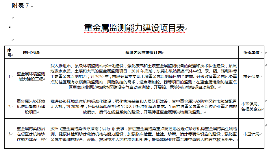 7. 重金屬監(jiān)測(cè)能力建設(shè)項(xiàng)目表