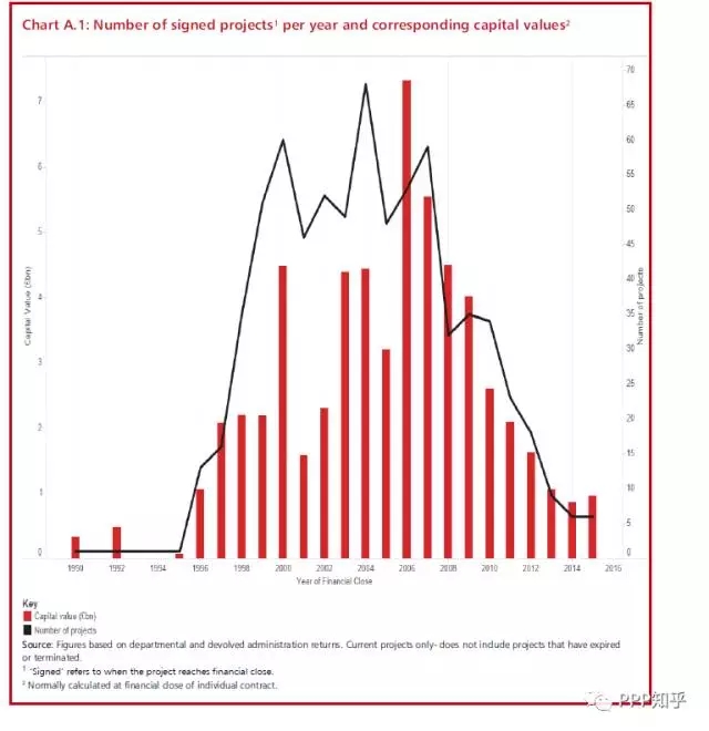 都說PPP模式發(fā)源于英國,截止2016年3月31日,英國用了大約20幾年的時(shí)間總共有716個(gè)PPP項(xiàng)目,總計(jì)金額594億英鎊(約5000億人民幣)。