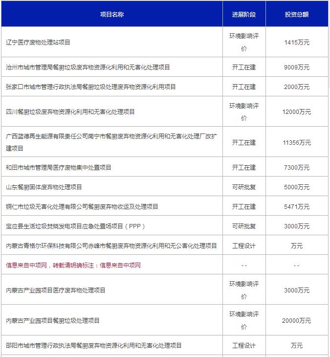 二、中項(xiàng)網(wǎng)權(quán)威發(fā)布2017年4月份國內(nèi)擬在建廢棄物項(xiàng)目(以下為部分項(xiàng)目列表):