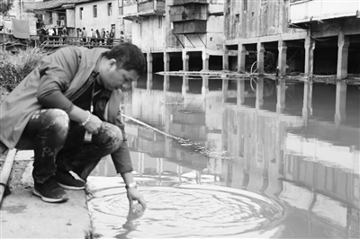 圖為“排污口守望者”在采集水樣。 潘智化攝