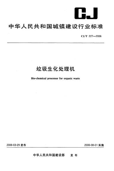 垃圾生化處理機(jī)(CJ/T 227-2006)