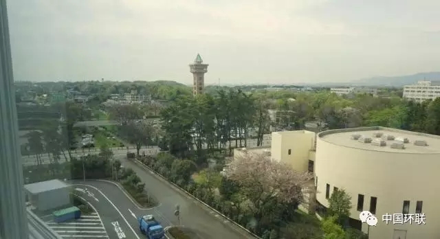 上圖在相模原市垃圾焚燒廠(chǎng)三樓拍攝,左下方是正在進(jìn)廠(chǎng)的垃圾車(chē),正前方高塔處是該市的中心公園——相模原公園。