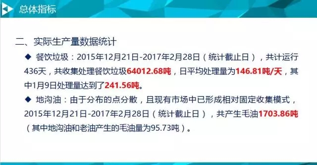 常州市餐廚廢棄物綜合處置一期工程于2014年11月8日正式建設(shè),包括收集、運輸、處理和信息化監(jiān)管等內(nèi)容,是江蘇省第一個由省級行政主管部門審批的餐廚廢棄物處理工程。采用目前國內(nèi)比較先進的技術(shù)路線,其中食物殘余采用“預(yù)處理+厭氧消化+沼氣發(fā)電”處理工藝,最終資源化產(chǎn)品主要為電能和生物柴油,工程于2015年12月21日投入試運行,至2017年2月28日,共計運行436天,共收集處理餐廚廢棄物64012.68噸,日平均處理量為146.81噸,其中,最多日處理量達241.56噸。為確保常州人“舌尖上的安全”,二期餐廚廢棄物處理系統(tǒng)將于2019年建成。