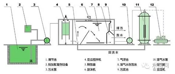 工藝(DAF工藝)是一項從水及廢水中分離固體顆粒高效快速的方法。工作原理:處理過的部分廢水循環(huán)流入溶氣罐,在加壓空氣狀態(tài)下,空氣過飽和溶解,然后在氣浮池的入口處與加入絮凝劑的原水混合,由于壓力減小,過飽和的空氣釋放出來,形成了微小氣泡,迅速附著在懸浮物上,將它提升至氣浮池的表面。從而形成了很容易去除...