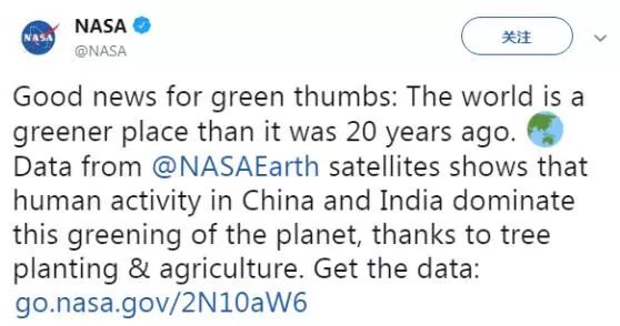 NASA稱,中國(guó)和印度的行動(dòng)主導(dǎo)了地球變綠。▲NASA推特截圖2月12日,美國(guó)國(guó)家航空航天局(NASA)在社交媒體上發(fā)文稱,“好消息:相比20年前,世界變得更‘綠色’了。‘NASA地球’的衛(wèi)星顯示,發(fā)生在中國(guó)和印度的人類活動(dòng)主導(dǎo)了這次地球變綠,感謝植樹造林和農(nóng)業(yè)種植。”NASA官網(wǎng)文章介紹,地球現(xiàn)在...