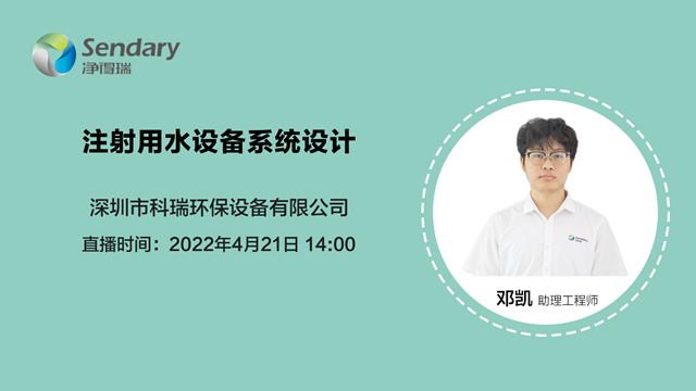 注射用水設(shè)備系統(tǒng)設(shè)計(jì)需要考慮哪些因素?如何做好URS分析?注射用水要滿足什么法規(guī)?設(shè)計(jì)基礎(chǔ)及系統(tǒng)工藝又有哪些?4月21號下午14:00,凈得瑞將為大家?guī)韺鲋辈ブv座:《注射用水設(shè)備系統(tǒng)設(shè)計(jì)》進(jìn)行解惑。圖一 《注射用水設(shè)備系統(tǒng)設(shè)計(jì)》點(diǎn)擊圖片進(jìn)入直播間 直播由凈得瑞助理工程師鄧凱在線分享,歡迎大家鎖定...