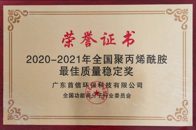 2020-2021年全國(guó)聚丙烯酰胺最佳質(zhì)量穩(wěn)定獎(jiǎng)已出爐,本次獲得該項(xiàng)榮譽(yù)的是——廣東首信環(huán)保材料科技有限公司。可喜、可賀、更可嘆!首信環(huán)保獲全國(guó)聚丙烯酰胺最佳質(zhì)量穩(wěn)定獎(jiǎng) 事實(shí)上,廣東首信環(huán)保材料科技有限公司(下稱“首信環(huán)保”)已經(jīng)不是第一次獲得該項(xiàng)榮譽(yù)...