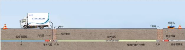 紫外線光原位固化內襯非開挖修復技術是將玻璃纖維編制成軟管浸漬光固化樹脂,然后將其拉入原有管道內充氣擴張緊貼原有管道,以原有管道為外模,軟管內膜為內模,然后紫外光的作用下使樹脂固化形成具有一定強度的復合內襯管的原位固化法。待管道清理完畢,且管道破裂塌陷預處理完后,采用紫外光固化內襯修復技術進行修復。 ...