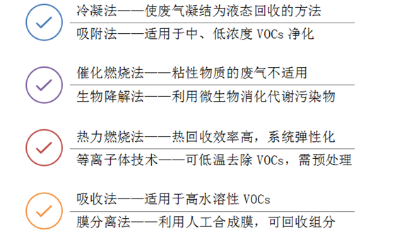 在VOCs治理領(lǐng)域,公認(rèn)的手段包括源頭削減、過程控制和末端治理等三個(gè)環(huán)節(jié)。從目前我國VOCs治理的進(jìn)程來看,減排工藝對科技創(chuàng)新要求較高,過程控制和末端治理相比更偏向末端治理環(huán)節(jié),這也直接帶動了VOCs處理設(shè)備市場的繁榮。 目前的主流工藝: 按照市場應(yīng)用情況來看,吸附法、催化燃燒法占比都比較高,同時(shí)生...