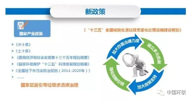 一、垃圾滲瀝液處理現(xiàn)狀新政策《全國地下水污染防治規(guī)劃(2011-2020年)》、《水十條》、《國民經(jīng)濟和社會發(fā)展第十三個五年規(guī)劃綱要》、《國家環(huán)境保護“十三五”科技發(fā)展規(guī)劃綱要》中均明確指出對于城鎮(zhèn)生活垃圾填埋場要及時開展?jié)B瀝液引流,做好垃圾滲瀝液處理處置、開發(fā)地下水源地污染源控制技術(shù)工作。新形勢垃...
